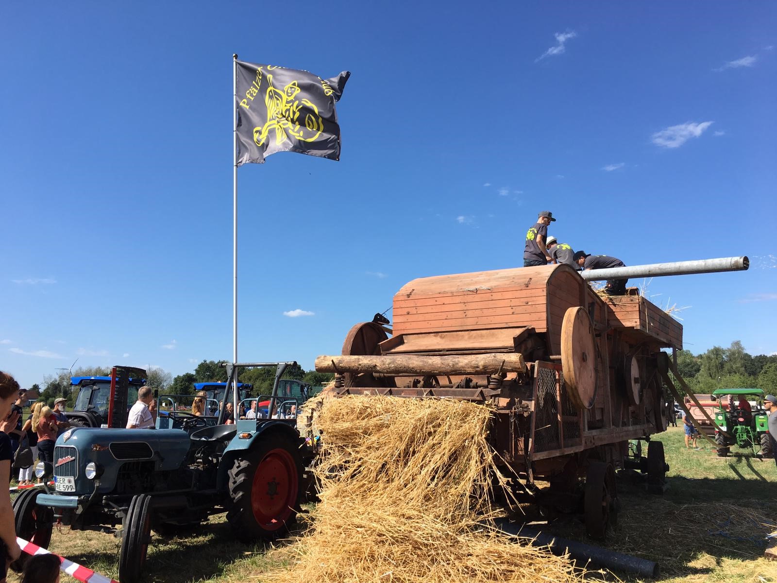 Am wettermäßig schöneren und deshalb vielbesuchten Sonntag gab es neben der Oldtimerausstellung u.a. Erntevorführungen vom Pfälzer Oldtimerclub, unter der Leitung von Dennis Ößwein und Christoph Anton, zu bestaunen.